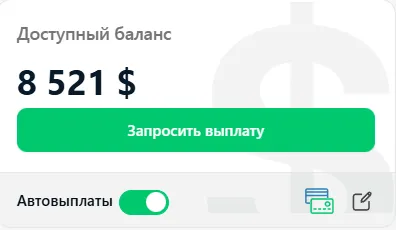 - Автовыплата запускается автоматически через 10–15 минут после начисления средств на баланс.